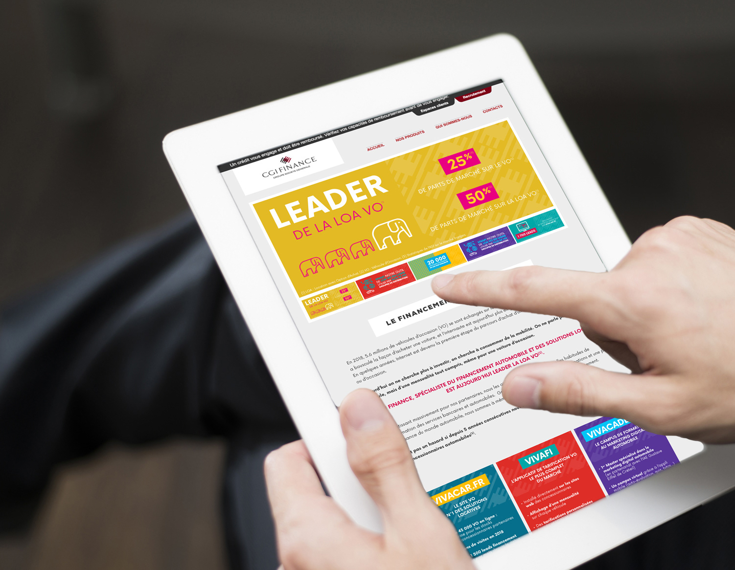 Filiale du Groupe Société Générale, CGI Finance est l'un des leaders sur le marché du financement auto, bateau et regroupement de crédits.